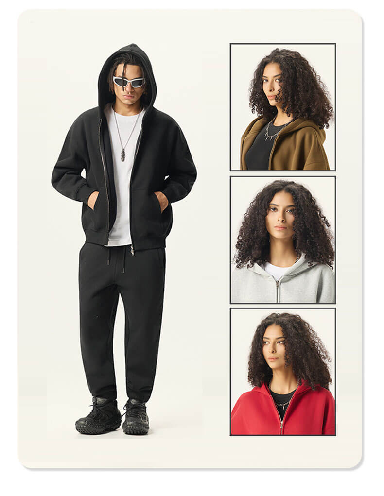 Unisex Two-Way Zip Fleece Hoodie
